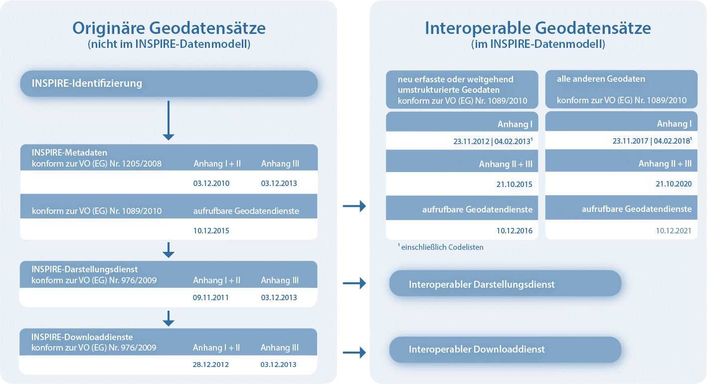 Die INSPIRE-Richtlinie sieht einen stufenweisen Aufbau der Europäischen Geodateninfrastruktur vor.